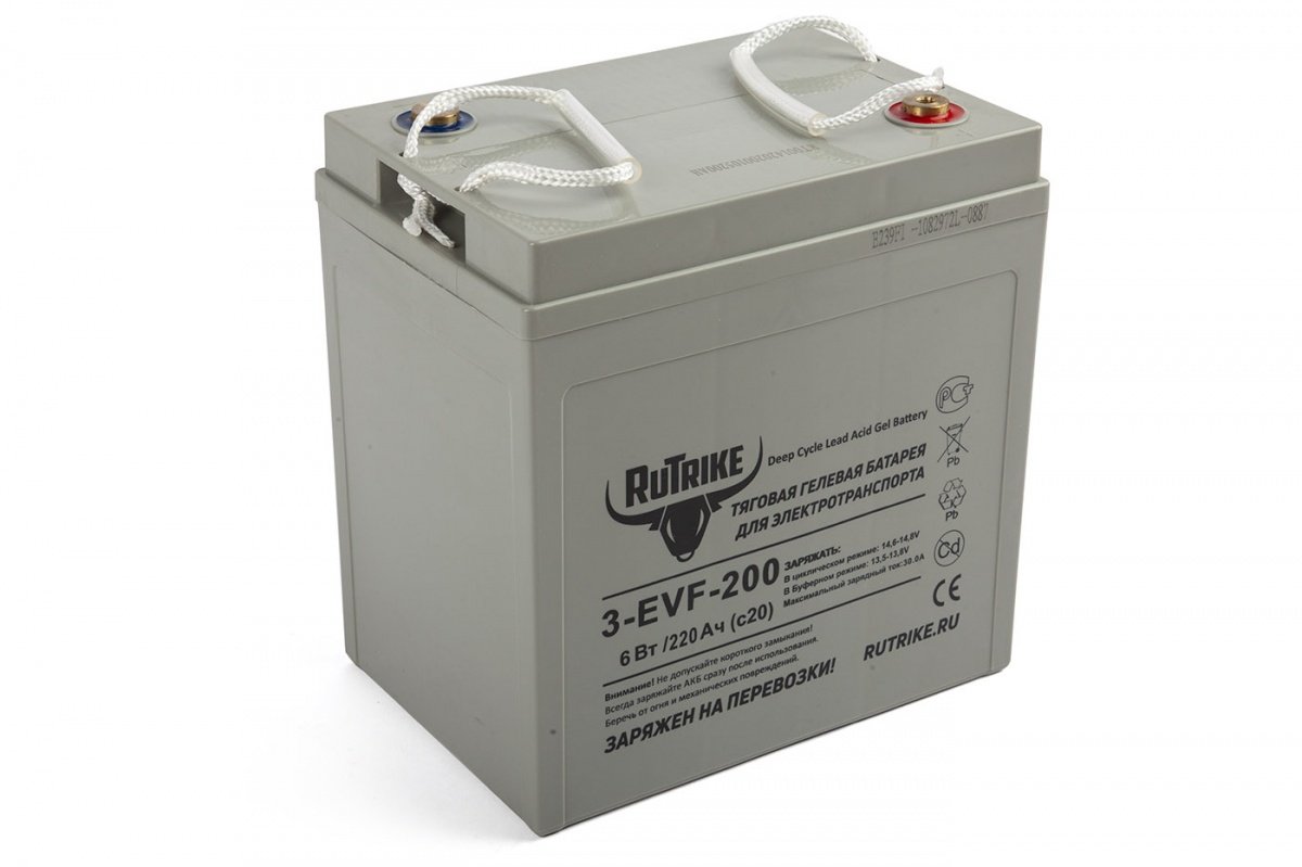 Аккумулятор RuTrike 3-EVF-200 изготовлена по технологии GEL (с гелеобразным кислотным электролитом) имеет длительный срок службы и предназначен для интенсивного использования. Высокая производительность при работе в глубоком цикле. Свинцовые пластины в виде решетки из особого сплава высокого качества, который защищает батарею от коррозии и снижает газовыделение. Специальная свинцовая паста высокой плотности позволяет работать до глубокого разряда, не снижая срок службы аккумулятора. Высокая надежность и безопасность: высокая прочность контейнера и крышки аккумулятора, изготовленных из АБС-пластика, оптимизированная модификация предохранительного клапана, надежные медные клеммы, проводящие ток большой силы – все это служит гарантией высокой надежности и безопасности эксплуатации в экстремальных условиях.