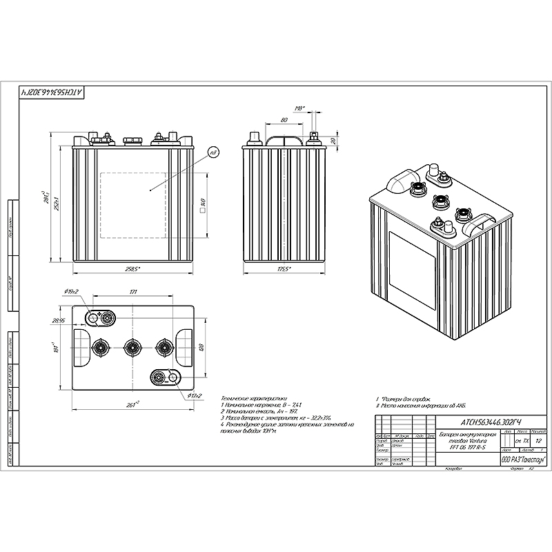 Тяговые аккумуляторные батареи Ventura серии FFT Flooded Flat Traction являются обслуживаемыми АКБ, выполненные по технологии WET (тяговые свинцово-кислотные моноблоки c жидким электролитом и плосконамазными пластинами). Отличаются ускоренным зарядом за счет низкого внутреннего сопротивления, быстрым выходом на номинальную емкость, а также весьма привлекательной стоимостью при солидном сроке службы не менее 1000 циклов заряд-разряд. Подходят для электротранспорта, полоуборочной и подъемной техники, солнечных и ветряных систем, гольф-каров, электромобилей, а также для ИБП, телекома и т. д.