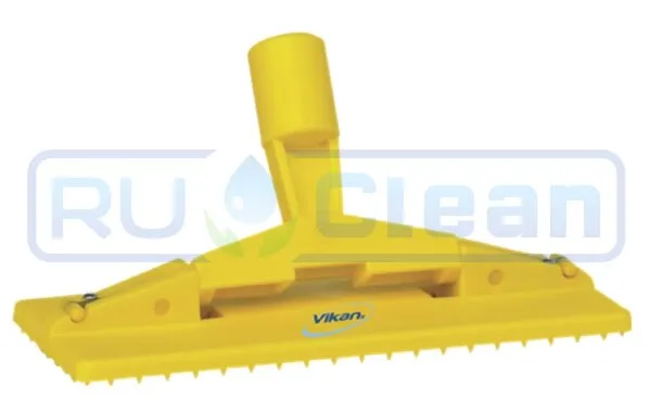 Держатель оснащен защелкой, которая хорошо удерживает пад. Может использоваться с любой ручкой Vikan, позволяя легко мыть полы, полы под оборудованием, антресоли из нержавеющей стали и белые стены из ПВХ.