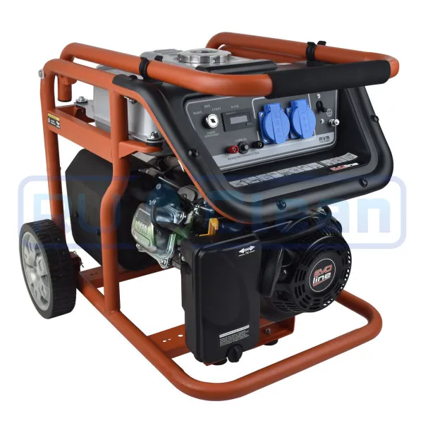 Электрогенератор EVOline KB 3300 E — это бензиновый генератор на одну фазу с максимальной мощностью 3 кВА. В основе его работы лежит четырехтактный двигатель EVOline ZS170FE. Модель оснащена системой электрического запуска. Рама сделана из прочной качественной стали, что обеспечивает защиту двигателя и облегчает транспортировку устройства. Топливный бак вмещает 15 литров, благодаря чему генератор может работать около 10 часов без перерыва в зависимости от нагрузки. Во время работы уровень шума достигает 76,5 дБ. Этот генератор отлично подходит как для домашнего использования, так и для нужд малого и среднего бизнеса. Он укомплектован колесами для удобства перемещения, счетчиком моточасов, электростартером и двумя розетками, а его размеры составляют 590 x 440 x 500 мм, при весе 52 кг. Гарантийный срок составляет 2 года.