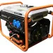 Генератор имеет электрический тип запуска и работает на бензиновом топливе. Имеются две розетки с защитными крышками, а также датчики и индикаторы на передней панели, отображающие состояние прибора.Мощность двигателя составляет 3 кВт.Данный генератор относится к однофазным генераторам.