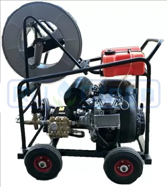 Автономный передвижной каналопромывочный аппарат Комета KBM 50/150 с барабаном и емкостью 60 литров на прочной стальной раме. Рама монтируется в кузов или на прицеп, оснащена поворотно-откидной полкой для установки барабана под РВД длиной до 90 метров. Бензиновый ДВС Zongshen ZS GB680 с электростартером имеет защиту от недостаточного уровня масла. Насос  Comet TW (150 бар) позволяет проводить различные работы по очистке от загрязнений высокоскоростной струей воды внутренних поверхностей трубопроводов, теплообменных аппаратов, мойки фасадов и различных поверхностей.