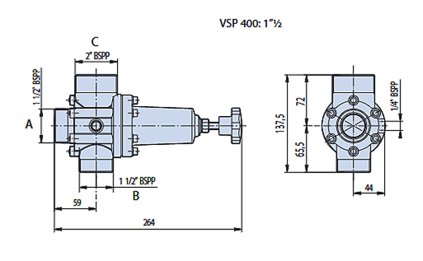 Присодинительные размеры: 1"1/2x1"1/2x2"