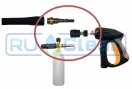 Пенная насадка с комплектом быстроразъемных соединений для подключения к стандартному пистолету и копью высокого давления Karcher серии HD и HDS.