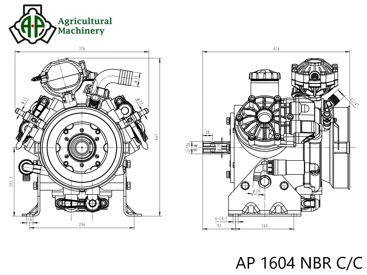 AP 1604 NBR C/C - трех мембранный насос для профессионального применения в сельском хозяйстве на опрыскивателях для обработки садов или виноградников с использованием средств защиты растений в режиме высокого давления. Мембраны и уплотнения выполнены из материала NBR (Бутадиен-нитрильный каучук). Корпус насоса выполнен по технологии литья под давлением.
