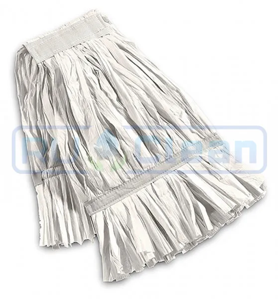 Специальный моп из вискозы и целлюлозы белого цвета, доступен также в синем и зеленом цвете. Моп легкий и устойчивый к агрессивному воздействию химических веществ, таких как: хлор и гипохлорин. Быстросохнущий, не оставляет ворса, не заплесневеет и не гниет. Он более абразивный, чем хлопковые мопы и поэтому требует меньше моющего средства для качественной очистки пола. Высокая абсорбирующая способность - поглощает до 5 раз больше своего веса.