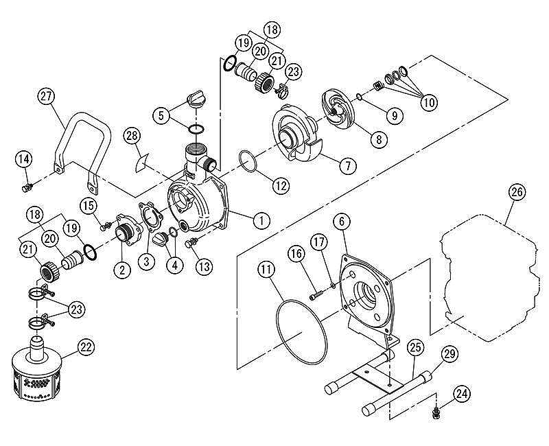 • Простой и легкий запуск без предварительного заполнения водой всасывающего шланга, достаточно заполнить водой корпус насоса.