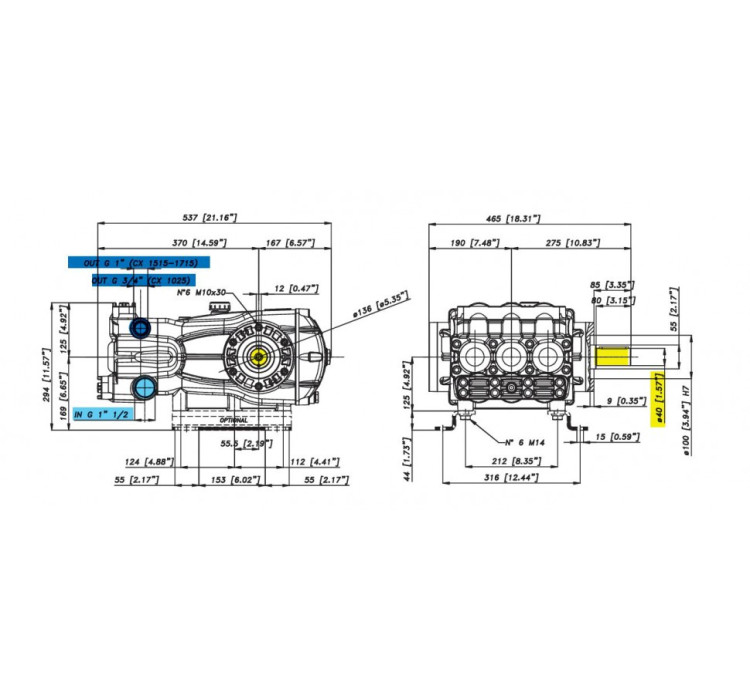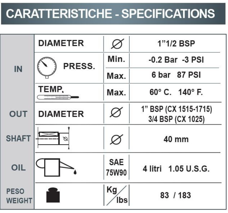 Плунжерный насос высокого давления с кривошипной передачей Bertolini CX 1715. Номинальное давление 150 бар, расход воды 175 л/мин, частота вращения вала 1000 об/мин. Гладкий вал 40мм, шпонка.