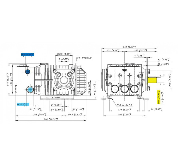 Плунжерный насос высокого давления с кривошипной передачей Bertolini KA 4815. Номинальное давление 150 бар, расход воды 47,6 л/мин, частота вращения вала 1450 об/мин. Гладкий вал 24мм, шпонка.