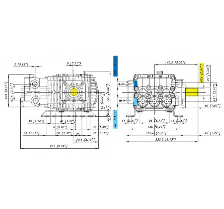 Плунжерный насос высокого давления с кривошипной передачей Bertolini TML 1328-HP. Номинальное давление 280 бар, расход воды 12,8 л/мин, частота вращения вала 1450 об/мин. Гладкий вал 24мм, шпонка.
