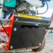 Давление прижима щетки и ее высота регулируется при помощи небольшого пневматического поддерживающего колеса, расположенного на стойке. Это позволяет уменьшить износ щетины при подметании различных типов поверхности.