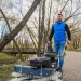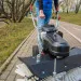 Давление прижима щетки и ее высота регулируется при помощи небольшого пневматического поддерживающего колеса, расположенного на стойке. Это позволяет уменьшить износ щетины при подметании различных типов поверхности.