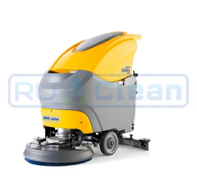 Бак для чистой воды 50 литров, бак для сбора грязной воды 60 литров. Дисковая щетка диаметром 510 мм позволит выполнить профессиональную очистку больших площадей твёрдых напольных поверхностей. Механический подъем щетки и водосборной балки упрощает эксплуатацию и увеличивает надежность машины. Параболическая водосборная балка и мощный вакуумный мотор идеально сушит поверхность. Максимальная производительность аппарата 1750 кв.м/ч.