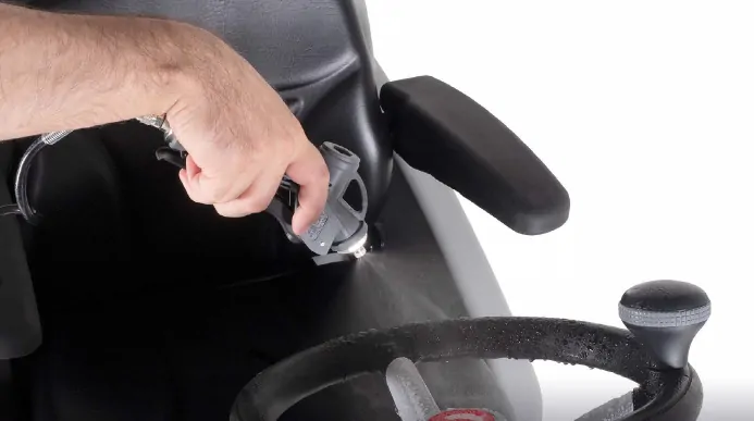 2. Распылительный пистолет с удлинительным шлангом для дезинцекции различных поверхностей - перила, складская техника, саму поломоечную машину.