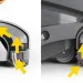 • Система крепления баков надёжно защелкивает их в конструкции машины, позволяя избежать любых утечек и разбрызгивания во время работы