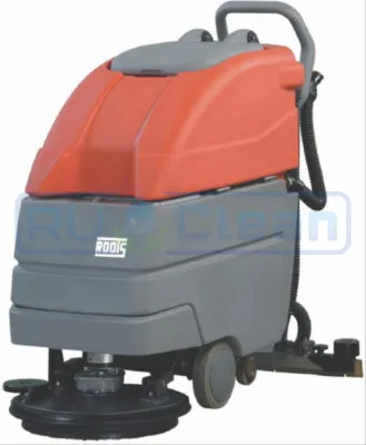 Машина управляется пешим оператором и не оснащена приводом движения. Движение осуществляется за счет усилия толкания, а также за счет вращения щетки. Усилие толкания на ровной горизонтальной поверхности не превышает 2-3 кг. Электропитание осуществляется от бытовой электросети 220В. В процессе работы машина всегда должна быть подключена к розетке с помощью удлинительного кабеля. Время работы моечного агрегата не ограничено емкостью аккумуляторов. Фактически, машину можно эксплуатировать в режиме 24/7.