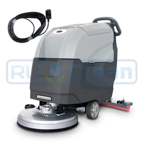 Машина поставляется в полной комплектации с чистящей щеткой, всасывающей балкой и удлинительным кабелем.