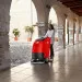 Электропитание осуществляется от аккумуляторных батарей, установленных на борту моечного агрегата. Машина полностью автономна: во время работы оператору не нужно отвлекаться и регулярно поправлять сетевой кабель.