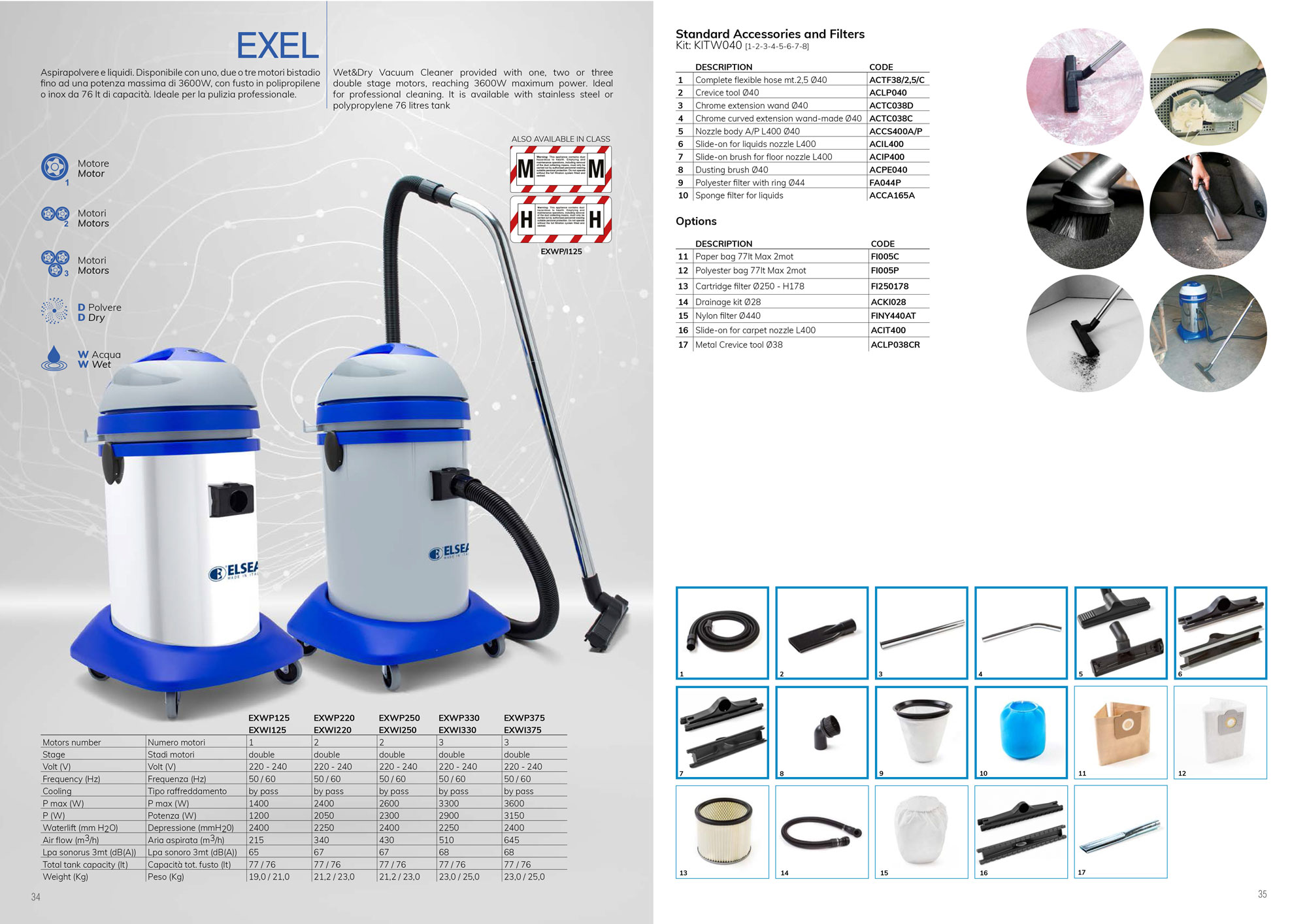 Пылесос EXEL WP330Y CW, производства итальянской компании Elsea, предназначен для сбора больших объемов сухой и влажной грязи.