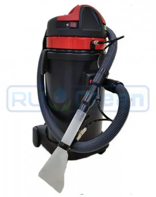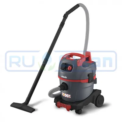 Пылесос сухой и влажной уборки. Подходит для больших площадей уборки (склады, гупермаркеты), также модель пользуется большой популярностью на автомойках. Модель оснащена тремя всасывающими турбинами с возможностью раздельного включения. Конструкция с тележкой с двумя большими задними колесами облегчает перемещение пылесоса на дальние расстояния. Вместительный бак для сбора мусора из нержавеющей стали объемом 62л.