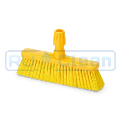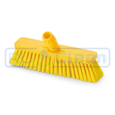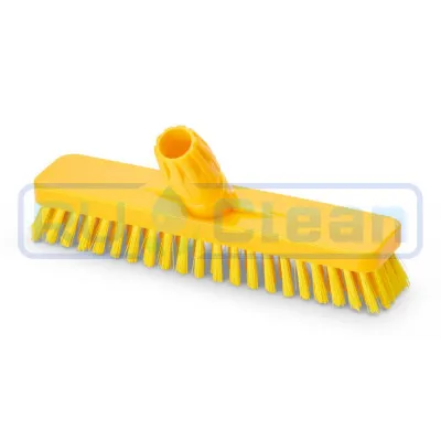 Эта щетка идеально подходит для чистки полов и стен в пищевой промышленности, и также во всех тех профессиональных областях, где гигиена является приоритетом. Волокно из ПБТ, жесткий ворс, для удобства пользования выпускается в 5 цветовых кодах в соответствии с правилами HACCP.
