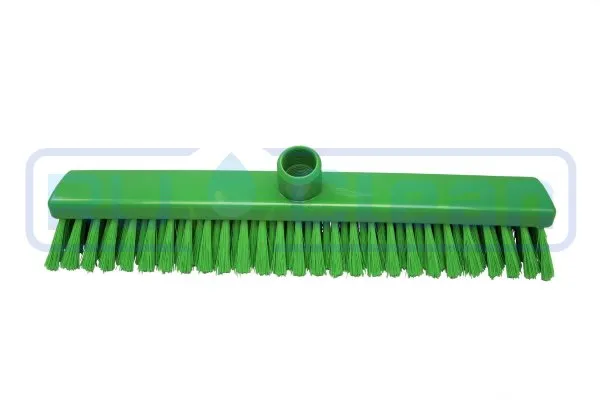 Комбинированная щетка имеет два вида щетины (0.3/0.7 мм), с одной стороны черная щетина жесткая удаляет прилипшие загрязнения, с другой стороны мягкая щетина их эффективно подметает. Идеальна для пекарен, кондитерских. Если направить щетку вперед жестким ворсом, то это позволит удалить грязь и более тяжелые частицы мусора, если более мягким ворсом-легкие частицы. Подходит для подметания как в сухой, так и во влажных зонах.