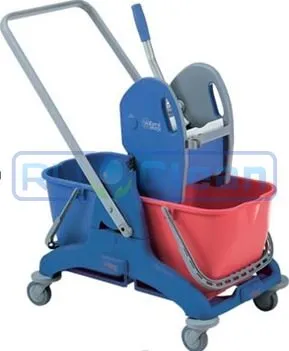 Тележка уборочная двухведерная предназначена для уборки помещений. Тележка снабжена механическим отжимом для мопа.