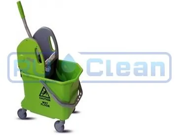 Ведро Euromop с механическим отжимом в комплекте. Механический отжим позволяет легко отжать моп, не пачкая рук. Поворотные колеса обеспечивают высокую подвижность ведра. Специальная резина колесных шин не оставляет следов на полу.