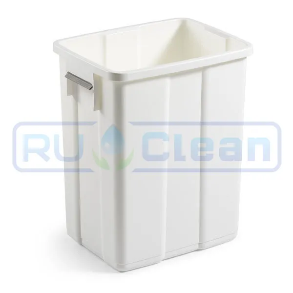 Контейнер для мусора без крышки для гостиничной тележки объемом в 25 л изготавливают из ударопрочного АБС-пластика. Прочный долговечный корпус емкости устойчив к ударам, успешно сопротивляется деформации, не оставляет царапин.